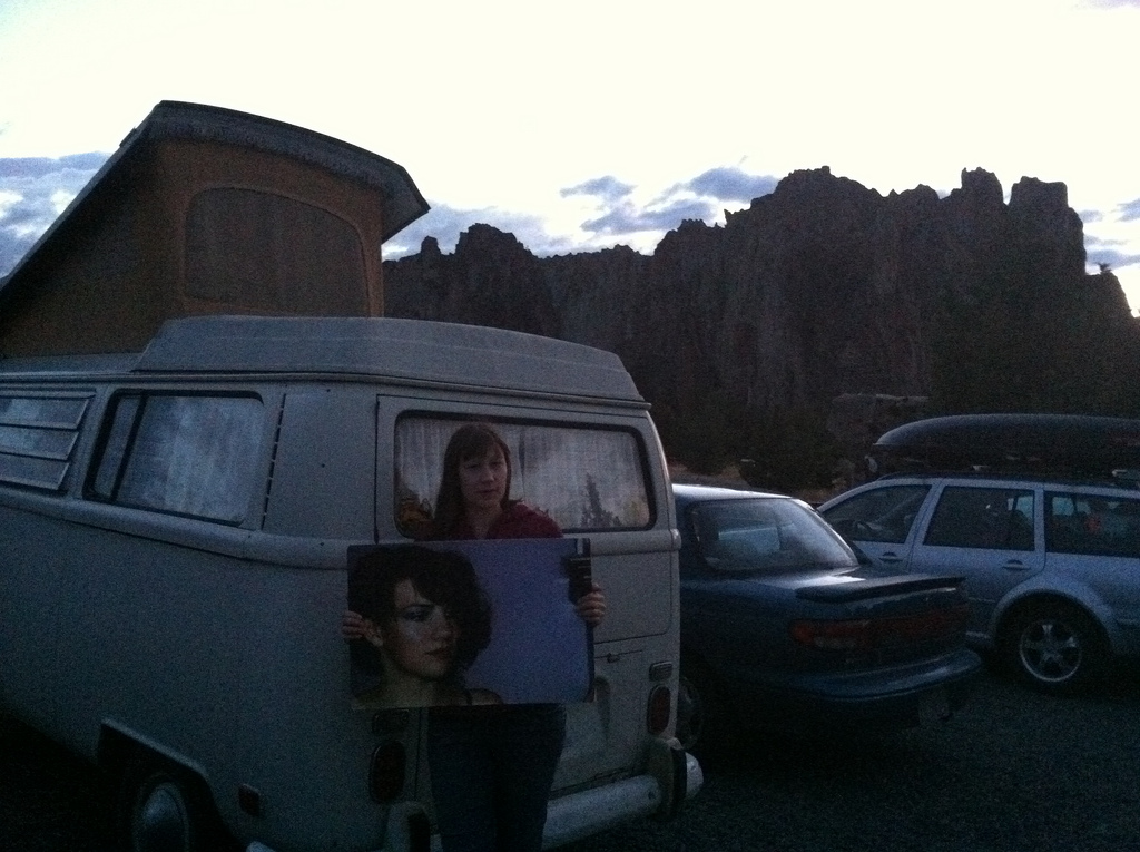 Even though there was plenty of whiskey going around the night before, everyone was up early to rock climb. Everyone except for Anzie, Nathaniel and myself. In the meantime, I fooled around with a slack rope set over sharp rocks, but only because a girl was holding my hand. By the time the rockclimbers came back I was ready to give it a try, so they were generous and helped out. We went to Smith Rock's version of a bunny slope, which in reality was the biggest mountain any of you have ever seen in your whole lives, and I was happy to clean the route since it gave me an excuse to stop and hang onto metal. Anzie had climbed before and reached the top quick. In the meantime, people were climbing the 400 foot spire Monkey Face and walking the high line there, so hats off to them. If you are ever in the Smith Rock area, go to Tumalo Feed Company because whether you care about steak or not you will be truly happy there. We left that part of Oregon behind for the last stretch home to Portland, where you can find us now, above! There's a little more to say and a lot more to do, so come visit sometime.